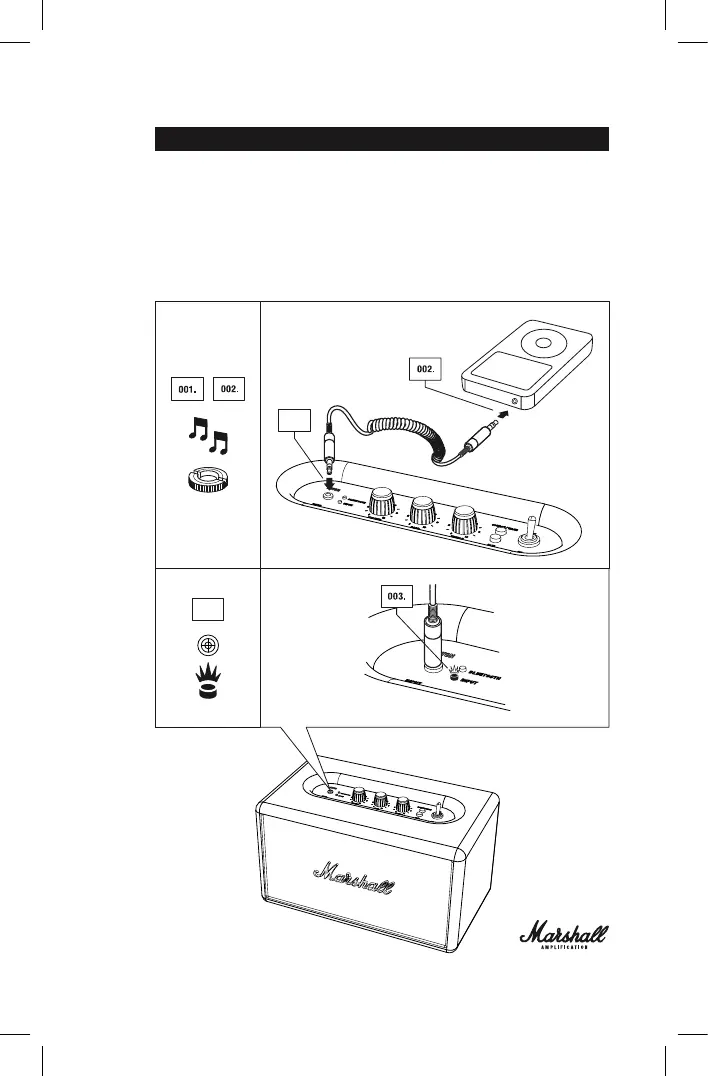 001.将带 3.5MM 立体声插头的线缆连接至音箱上有输入标记的输入 1。