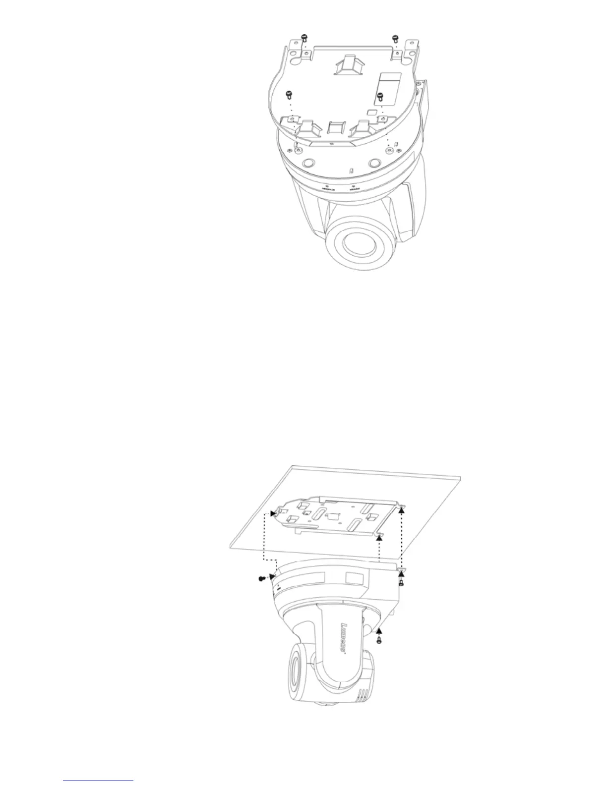 3. Lock the metal plate B on ceiling mounted hanger