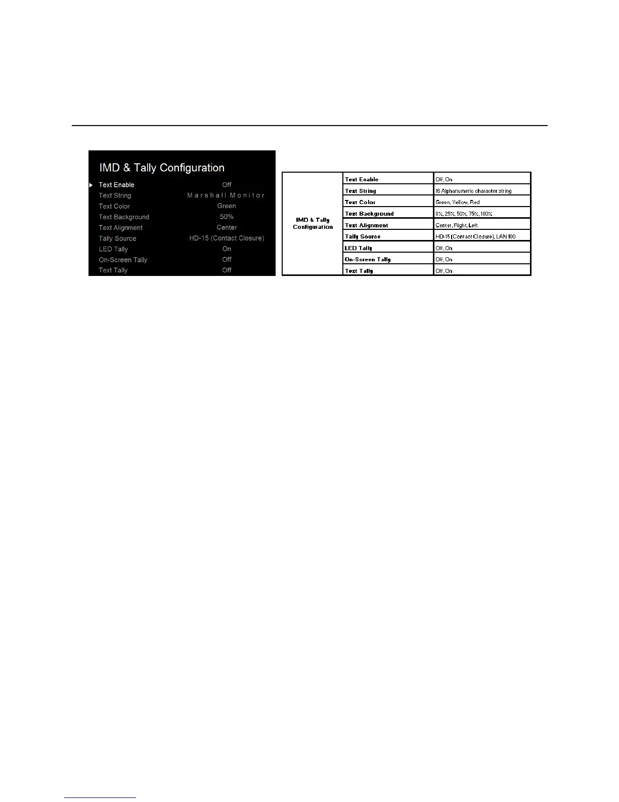 render the LAN Tally interface disabled. Choosing the LAN 100 option will also render the HD-15 (Contact
