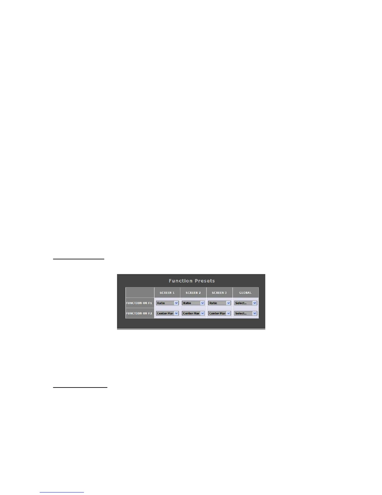 Use these rows to select the functions set to be controlled by the F1 and F2 buttons on the physical unit or on