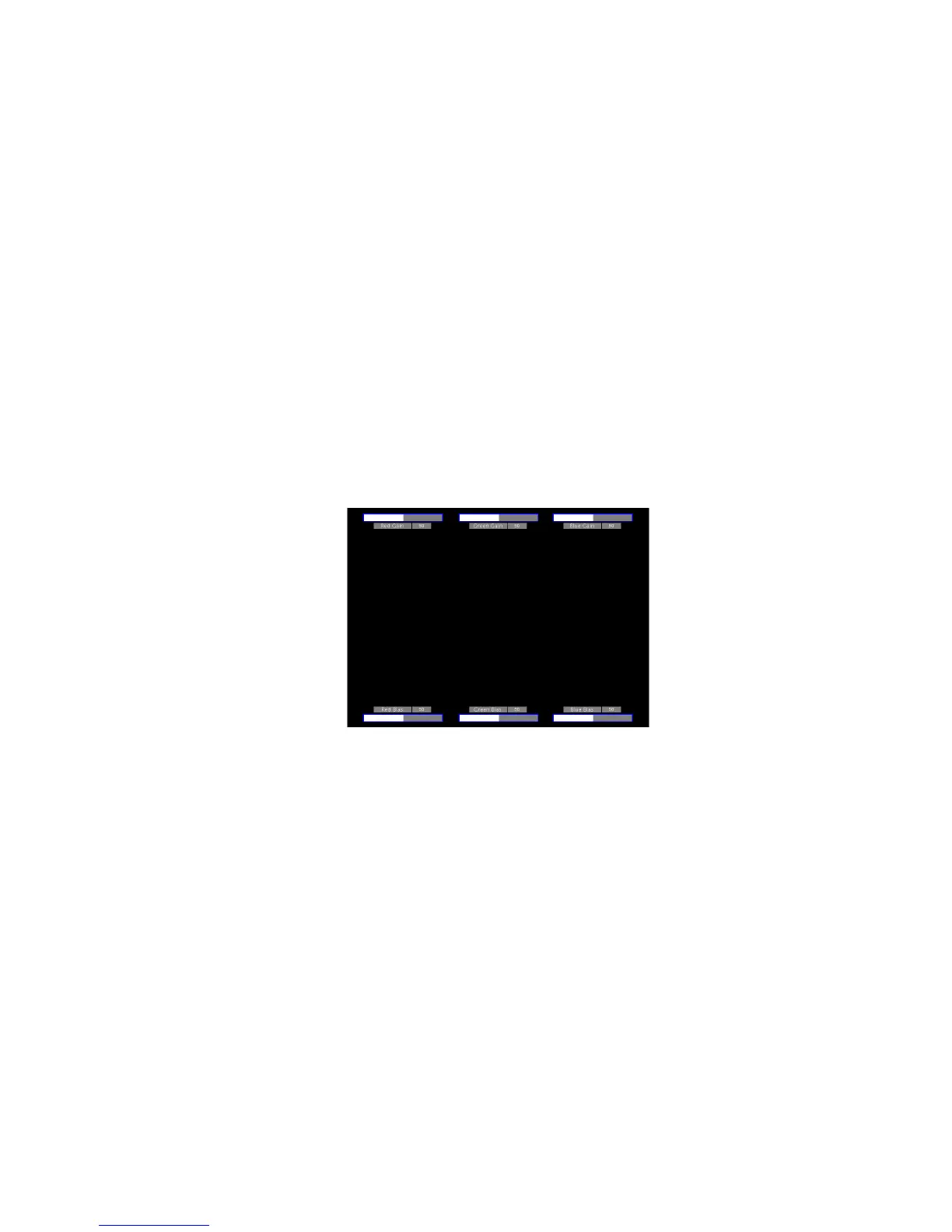 When selecting the RGB Bias and Gain submenu, gain adjustment indicators will appear at the top of the