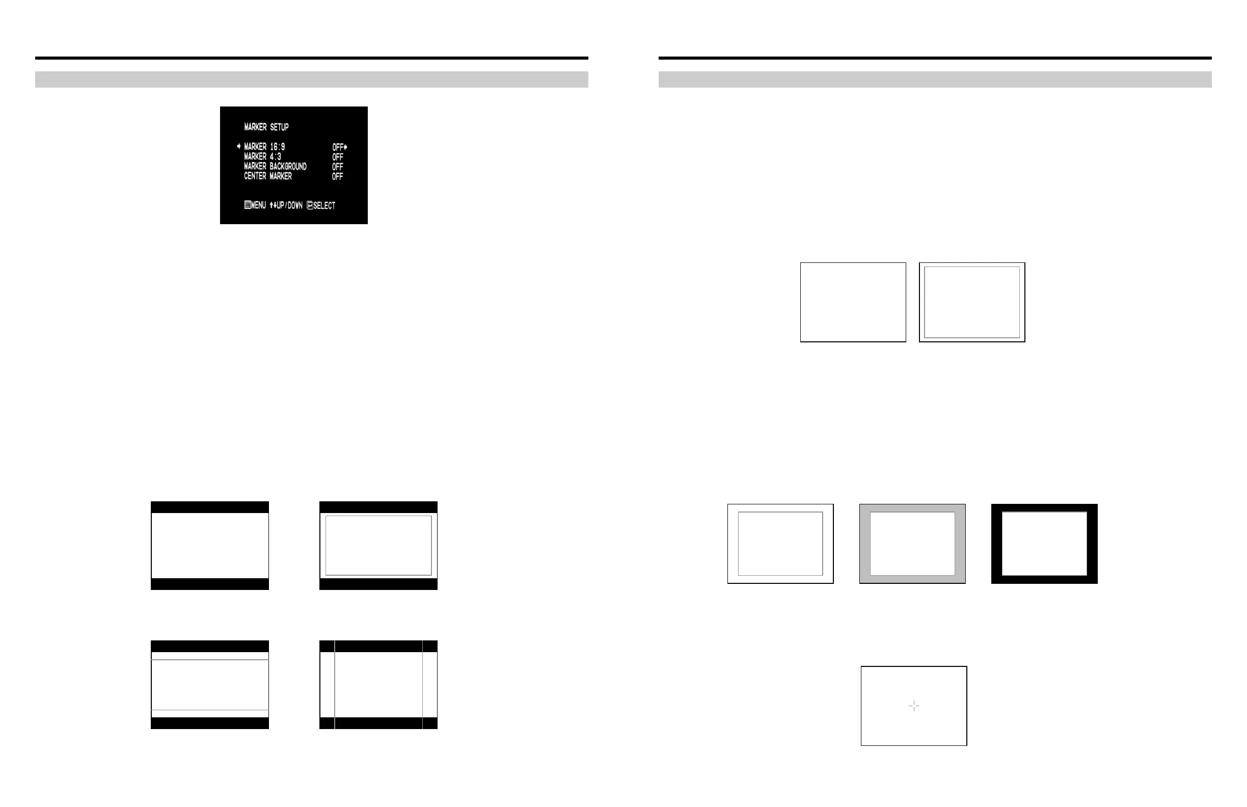 Use this setting to superimpose one of 5 markers on the screen when in 4:3 mode. This setting is disabled when the