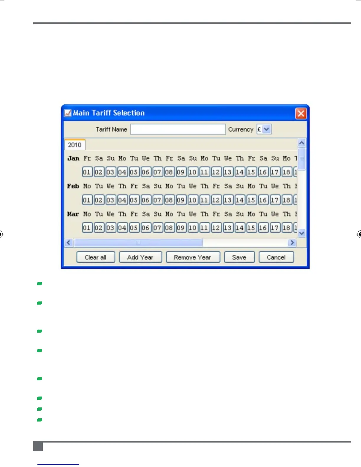 tariff values for that day (i.e. every half hour). There are 'copy forward' and 'clear'