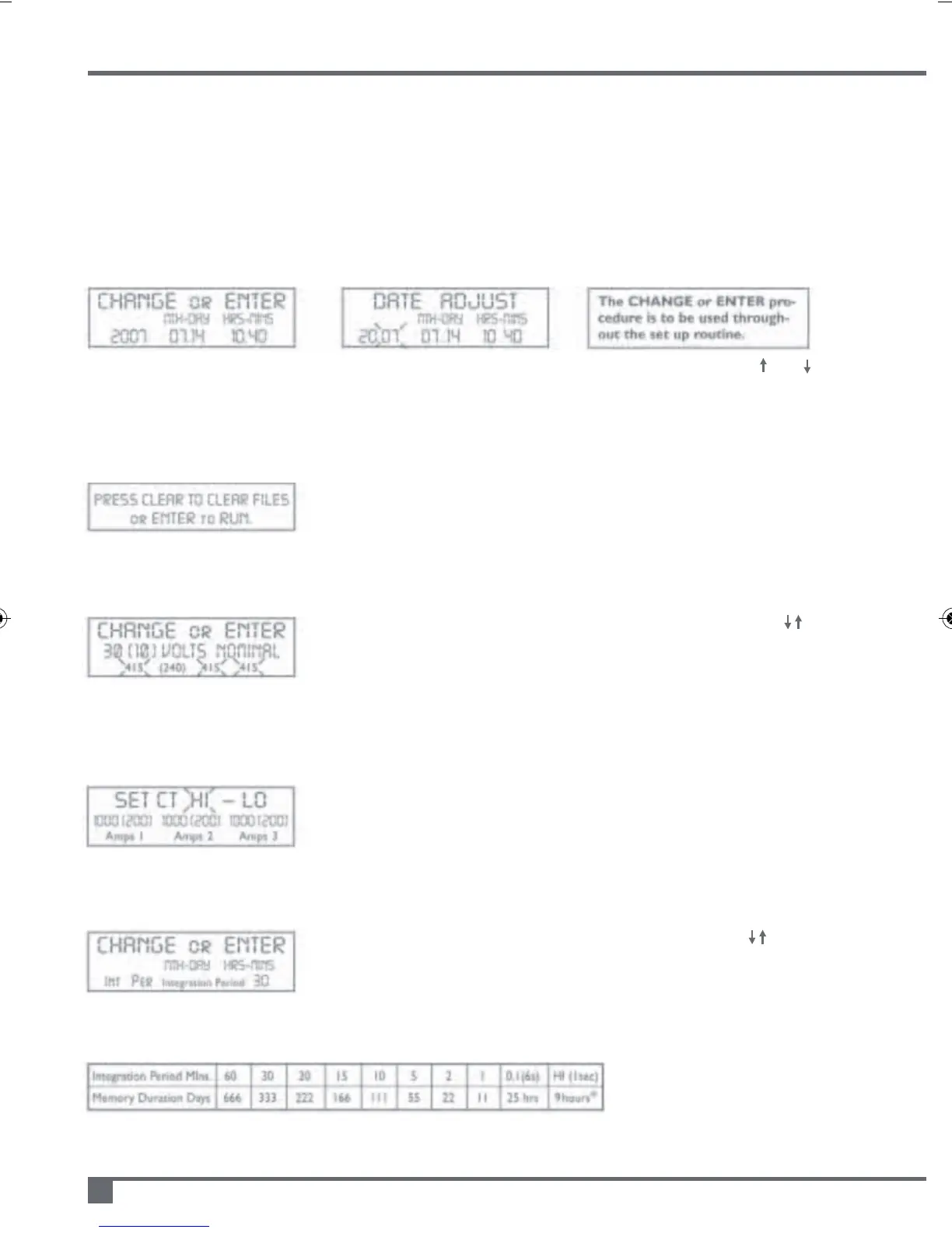 If date and time correct press ENTER Alter flashing character(s) using CHANGE and
