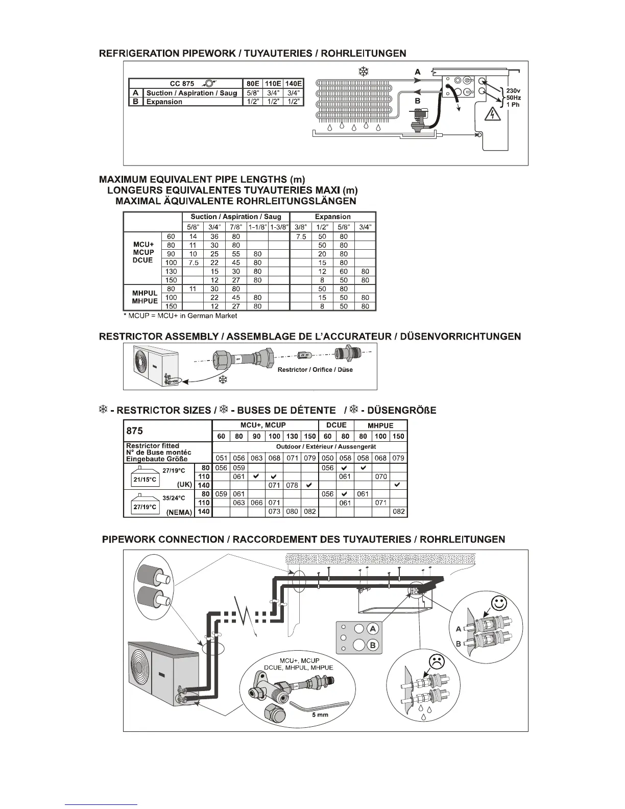 Marstair CC 875 - Pipework, Restrictors, and Condensate Drain