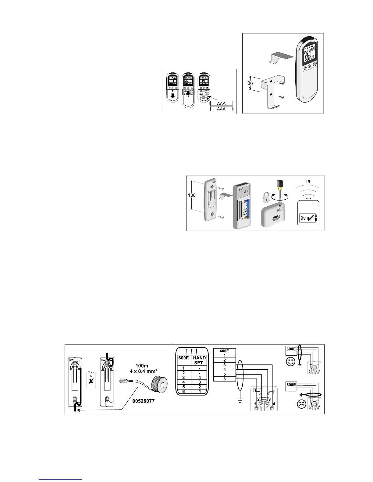 875E units are supplied with a remote controller, wall mounting bracket, PP3 (9 volt) battery, screws and wall plugs.