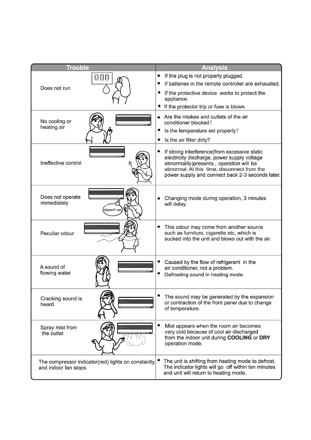 The following examples may not always be due to a malfunction; please check before calling an