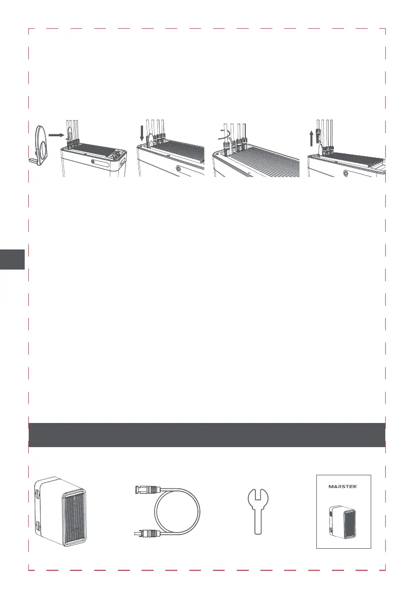 • Prima di collegare i cavi, assicurarsi che il micro inverter, i pannelli solari e la rete domestica