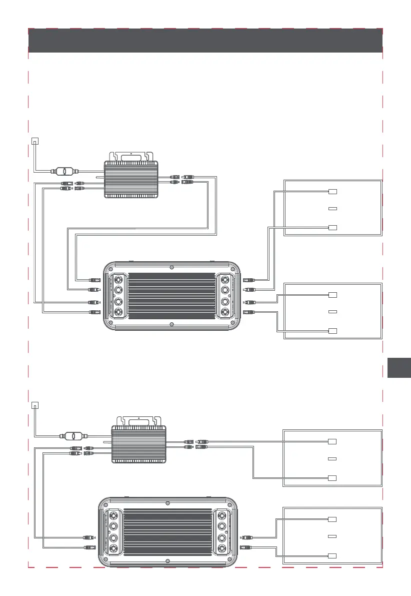 l’un des micro-onduleurs à la sortie 1 de l’appareil et l’autre micro-onduleur est suspendu ou
