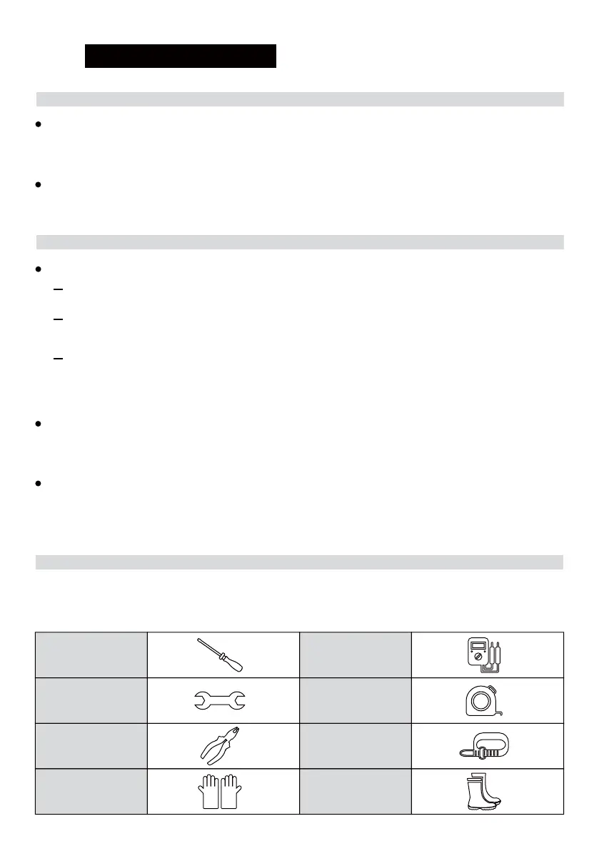 Installation tools include but are not limited to the recommended tools listed in the table below.