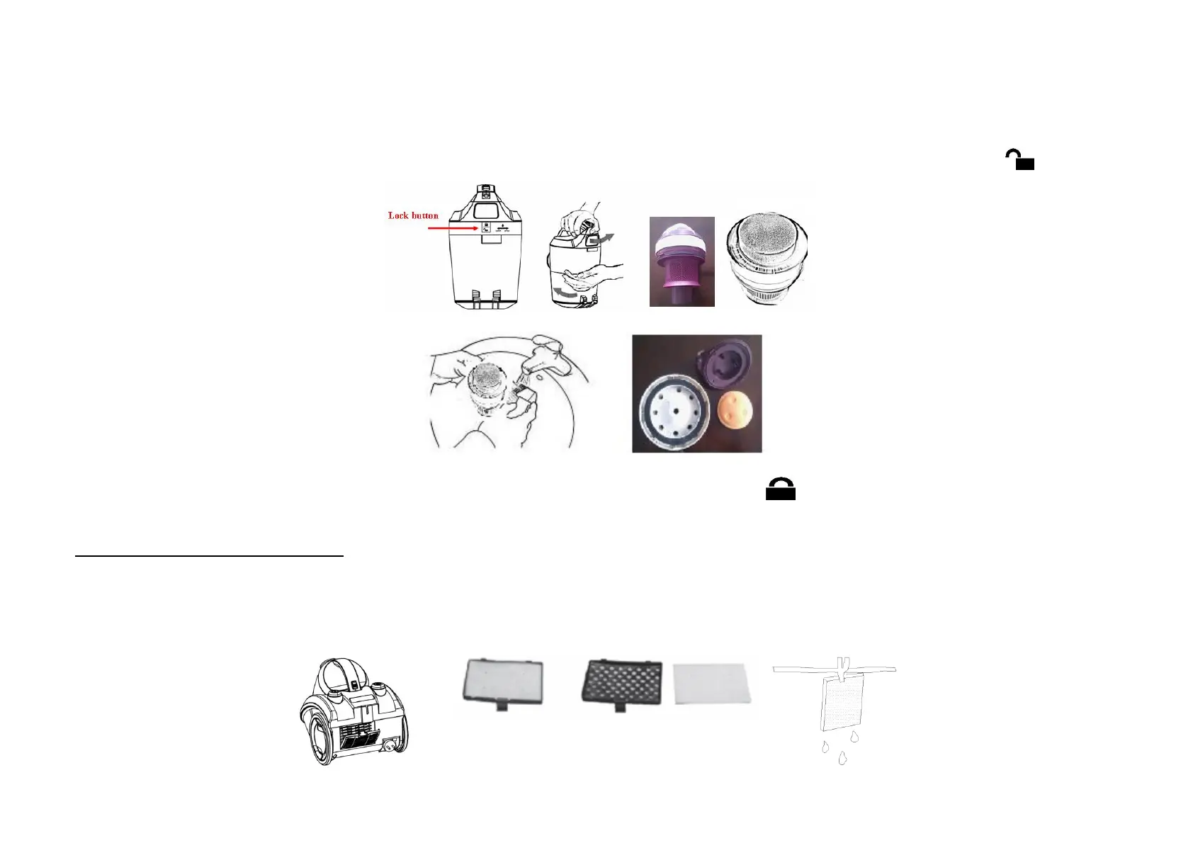 Поверните крышку пылесборника против часовой стрелки, извлеките фильтр, нажав на кнопку извлечения микро-фильтра на крышке пылесборника
