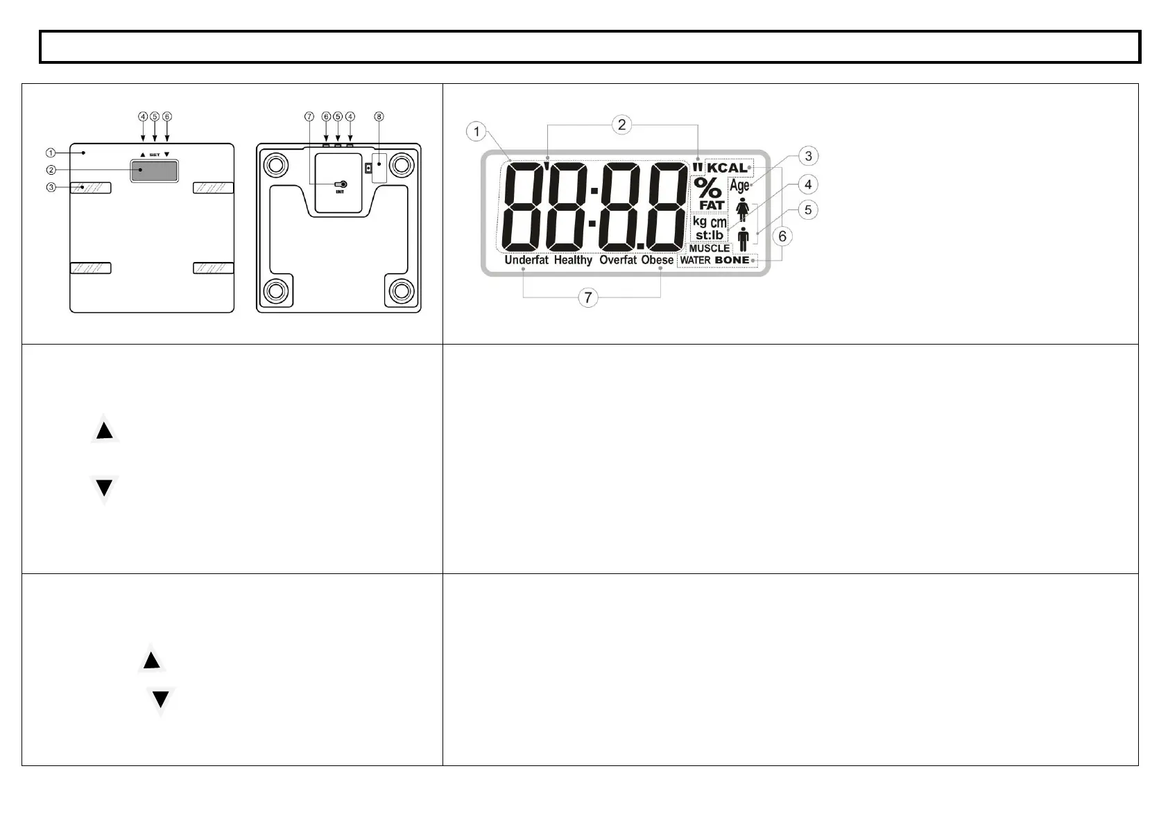 4. Unit indicator (kg, st:lb) and height indicator (cm)