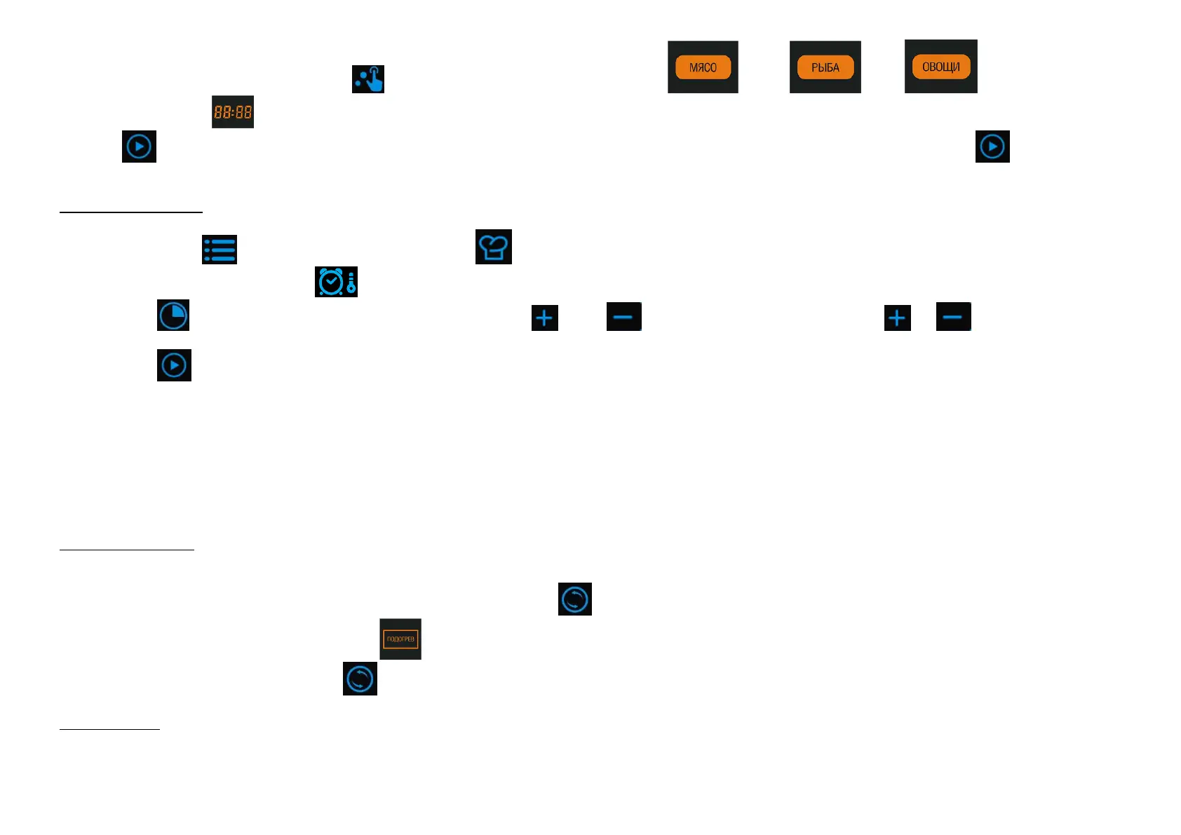 Press for cooking process start or change time according to User ЦКЧЮКl КrЭТМlО įCСКЧРО НОПКЮlЭ ЬОЭЭТЧРЬ ЛОПШrО МШШФТЧР ЩrШРrКЦ ЬЭКrЭ (аТЭС ЩrОЬЬЮrО)” and then press .