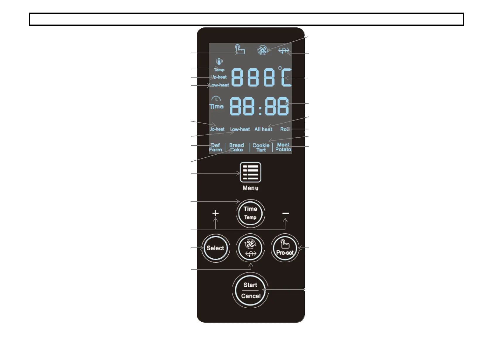 21. Кнопки установки времени и температуры «+»,«-»