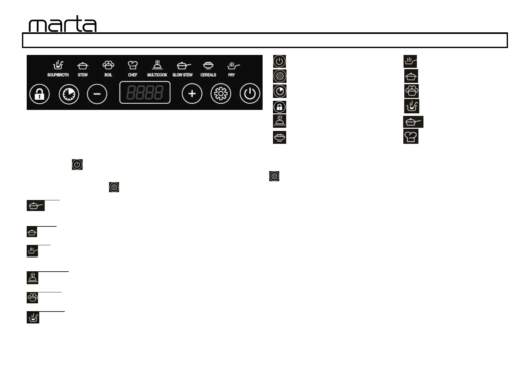 ● Данная плитка оснащена 8 наиболее популярными режимами приготовления. Нажмите на кнопку