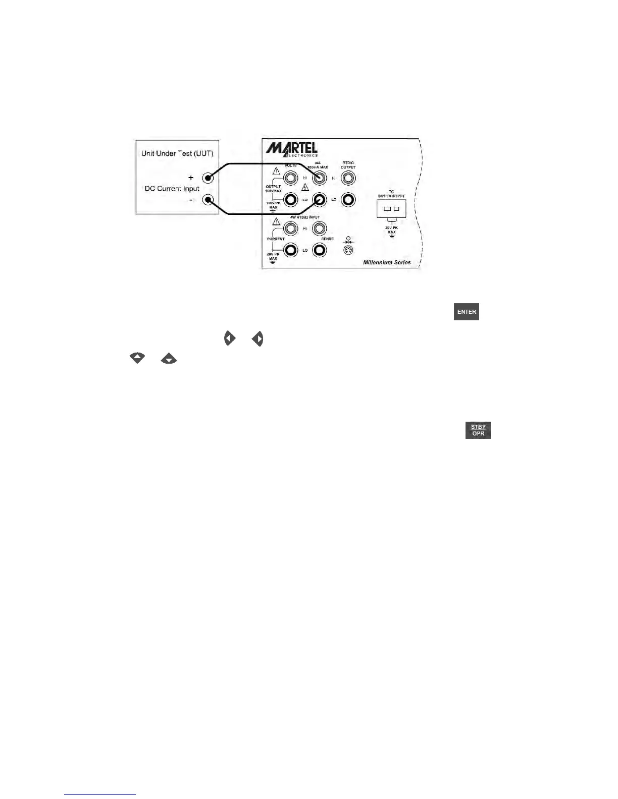 e) When DC current mode is first selected, the 3001 is placed in the standby (Stby)