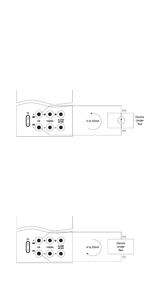 1. Select the mA input mode. Note: To power