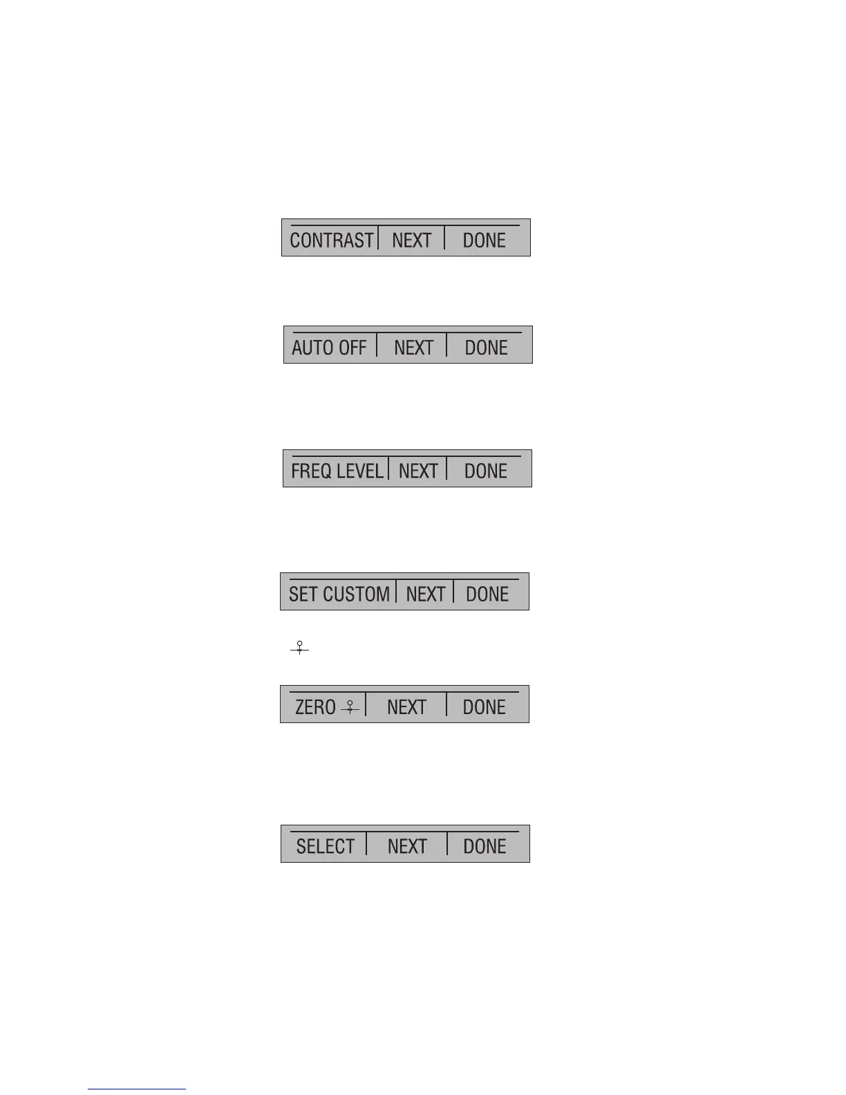 It has the options [ZERO ], used to zero pressure, [NEXT] and [DONE], which have the