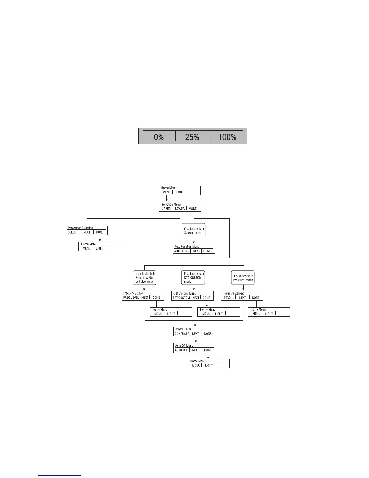 The three function keys are associated with 0, 25, and 100% values, respectively. 0 and 100%