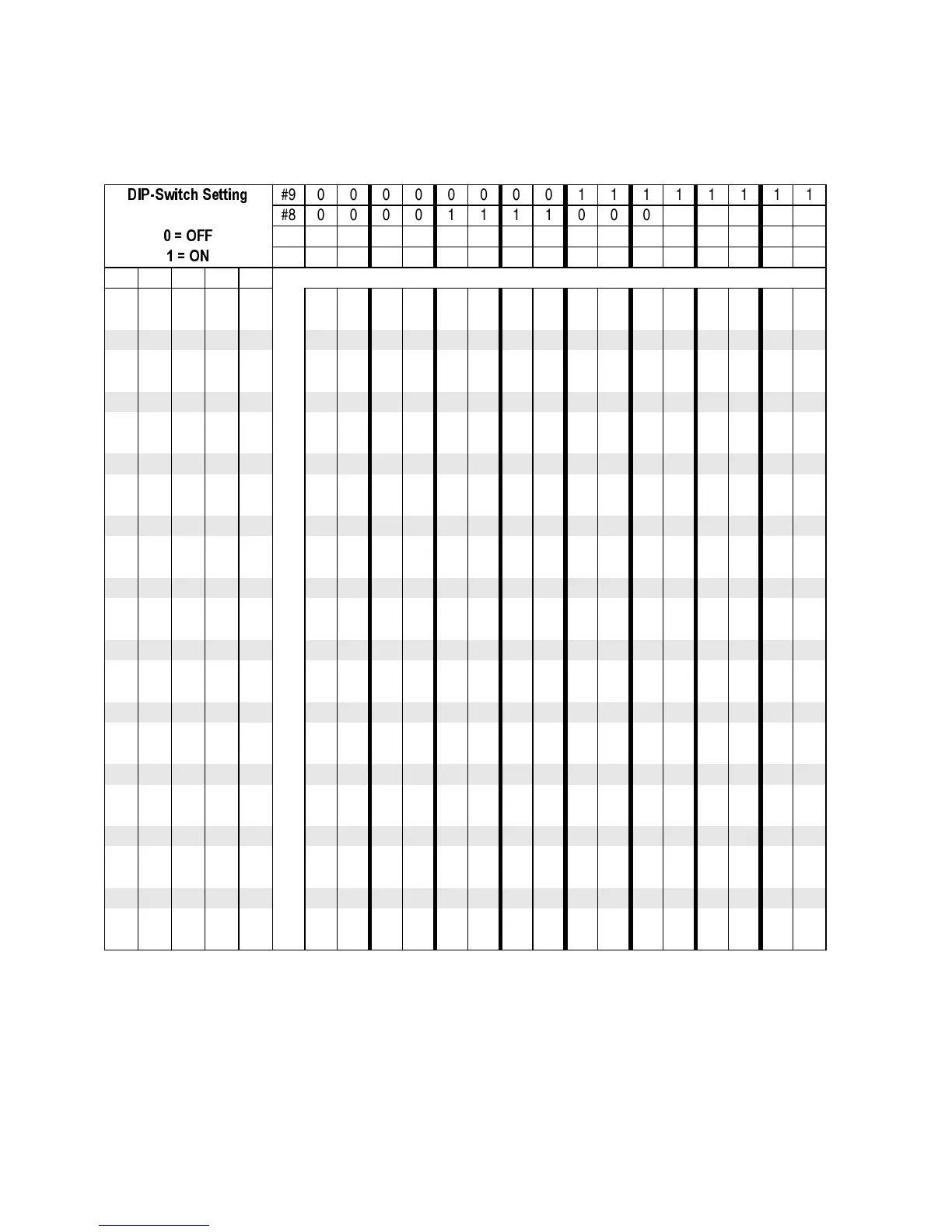 3 Set pins 1 through 9 to the ON (1) or OFF (0) position as listed in the table.