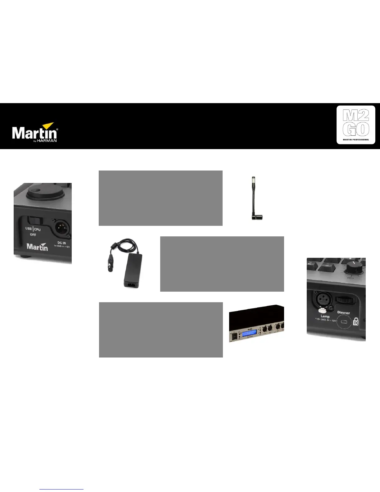 Martin M2GO - M2 GO Additional Accessories; Angular LED Desk Lamp; M2 GO Power Supply Unit; Ether2 DMX8 Unit Details