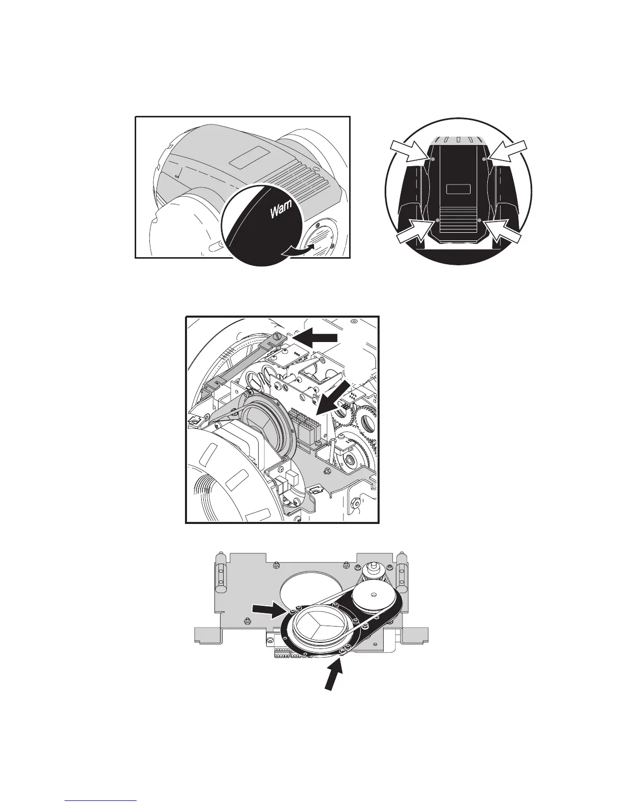 holding the prism module in place. Disconnect the cables (at positions marked B) from the PCBs on the