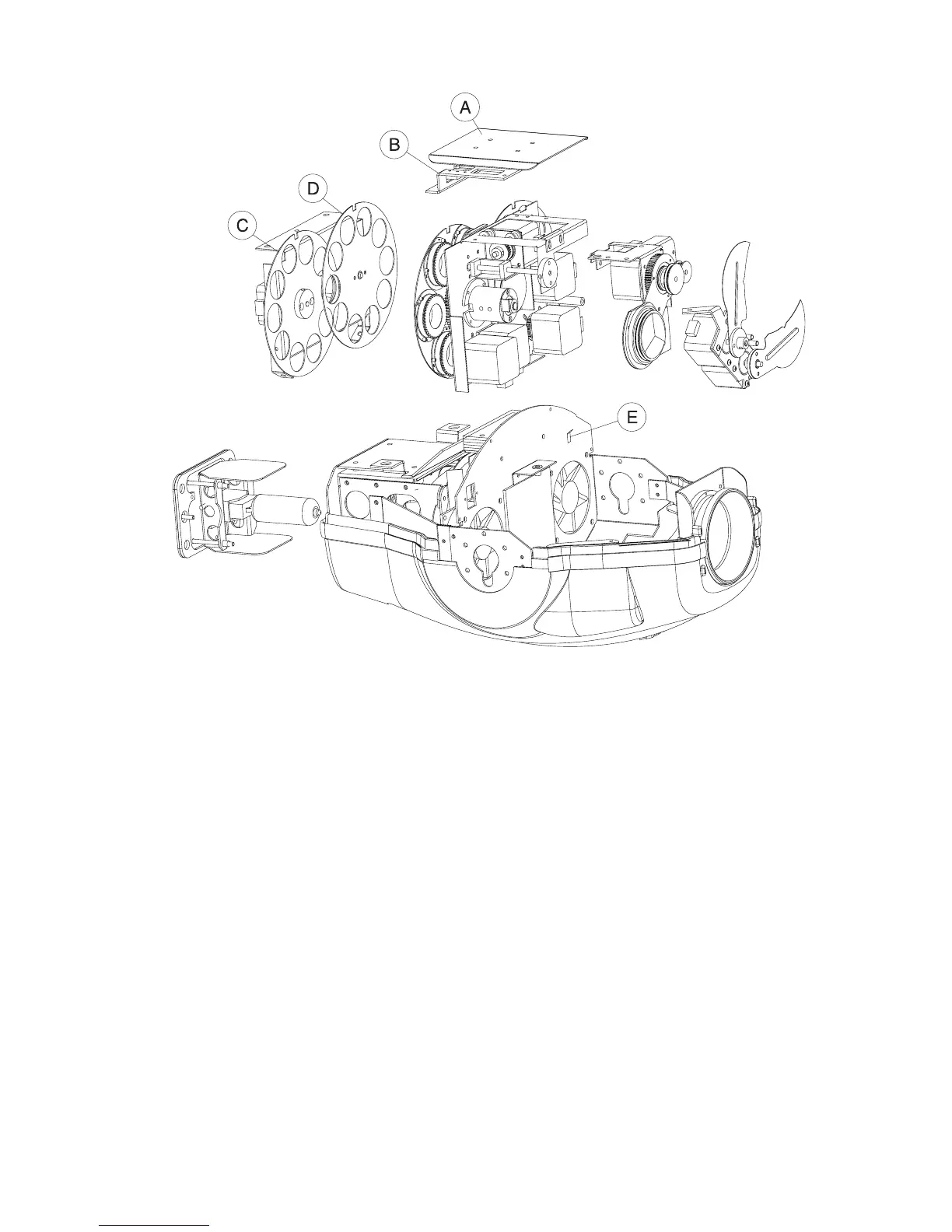 tilt motor and reset switch wires to the left (as the fixture faces you). Lay the bundle with the focus, iris, prism,