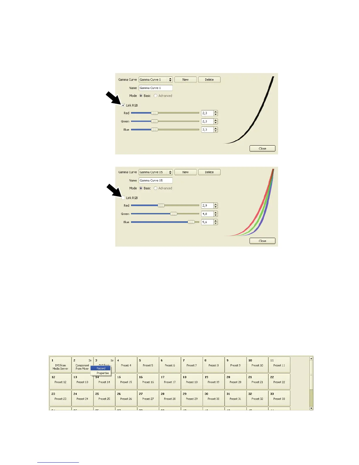 5. If you open the Gamma Curve Edit window, with the Link RGB checkbox (arrowed) checked, you can