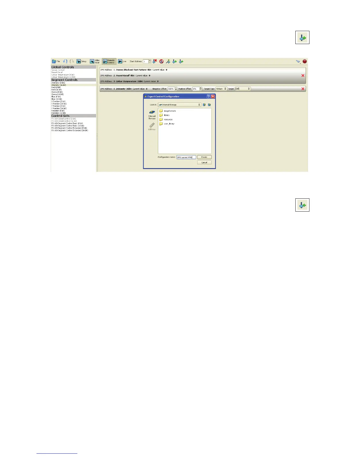 • You can export the complete set of DMX controls in their current layout for reuse in another