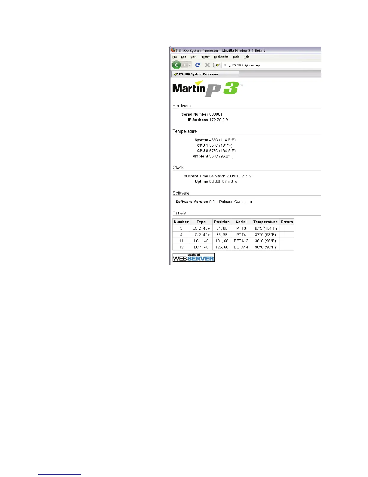 You can manage panel utilities remotely from the P3-100 by clicking on the panel’s serial number in the