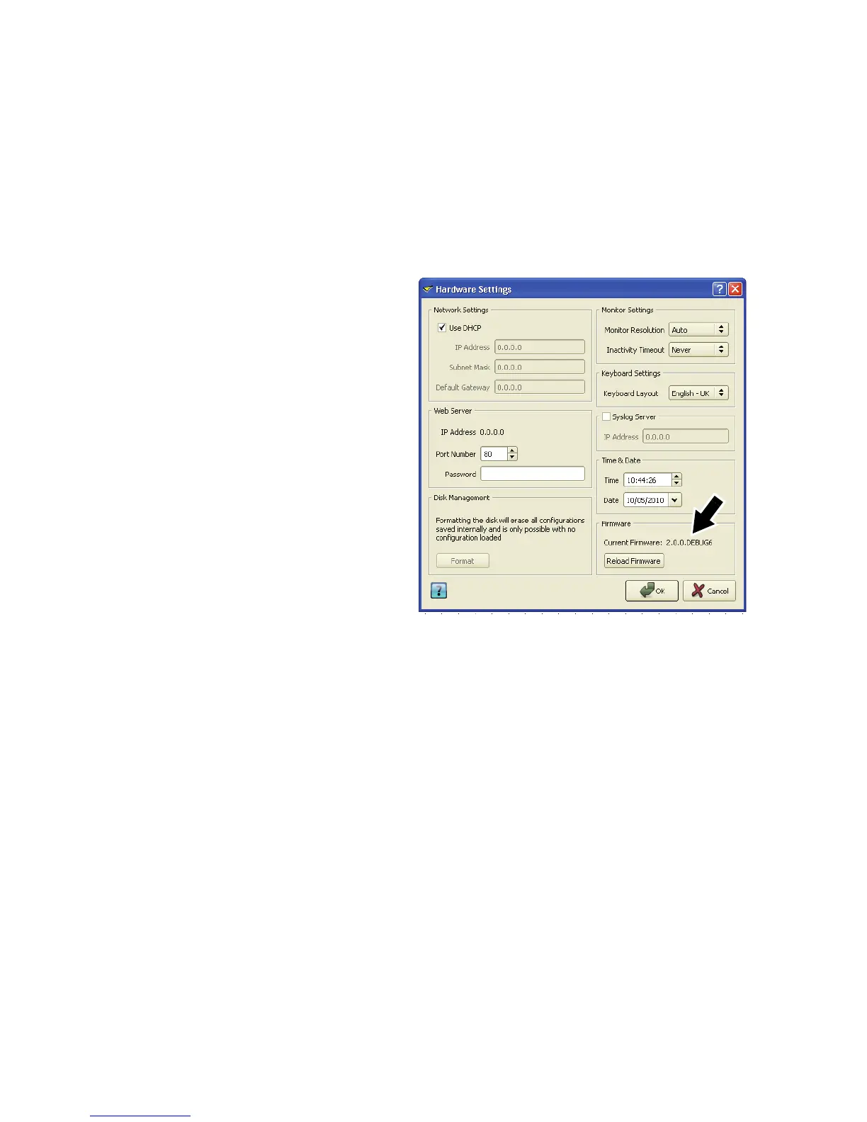 Figure 44: Firmware version and reloading firmware
