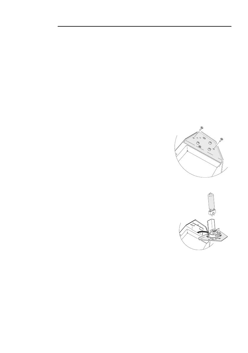 2 Remove the two lamp access screws from the lamp-