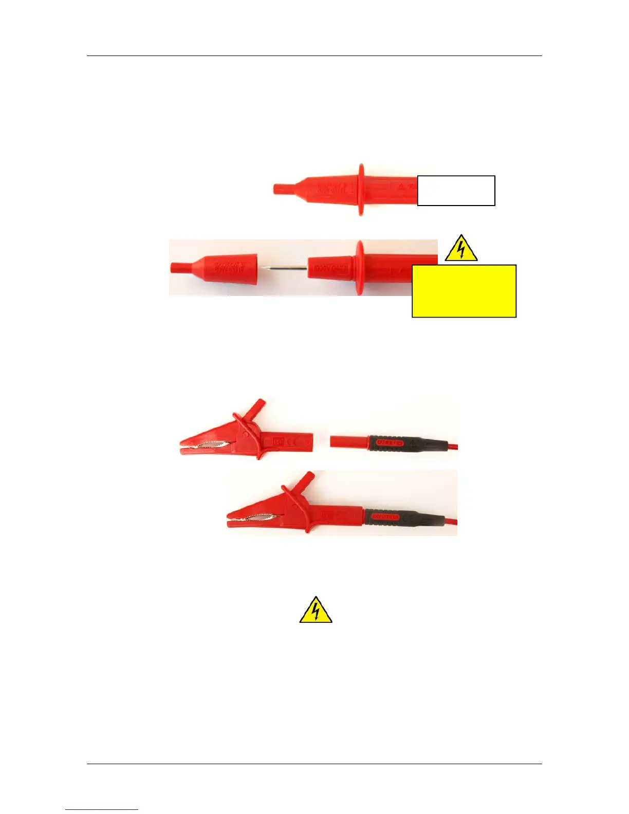 The 4mm plugs of this test lead MUST ONLY be connected to the test equipment they