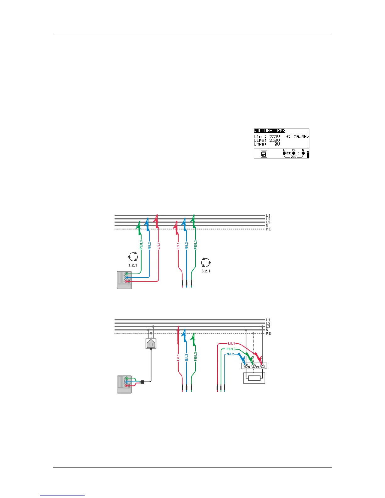 Figure 5.3: Connection of plug test cable and test leads in a single-phase system