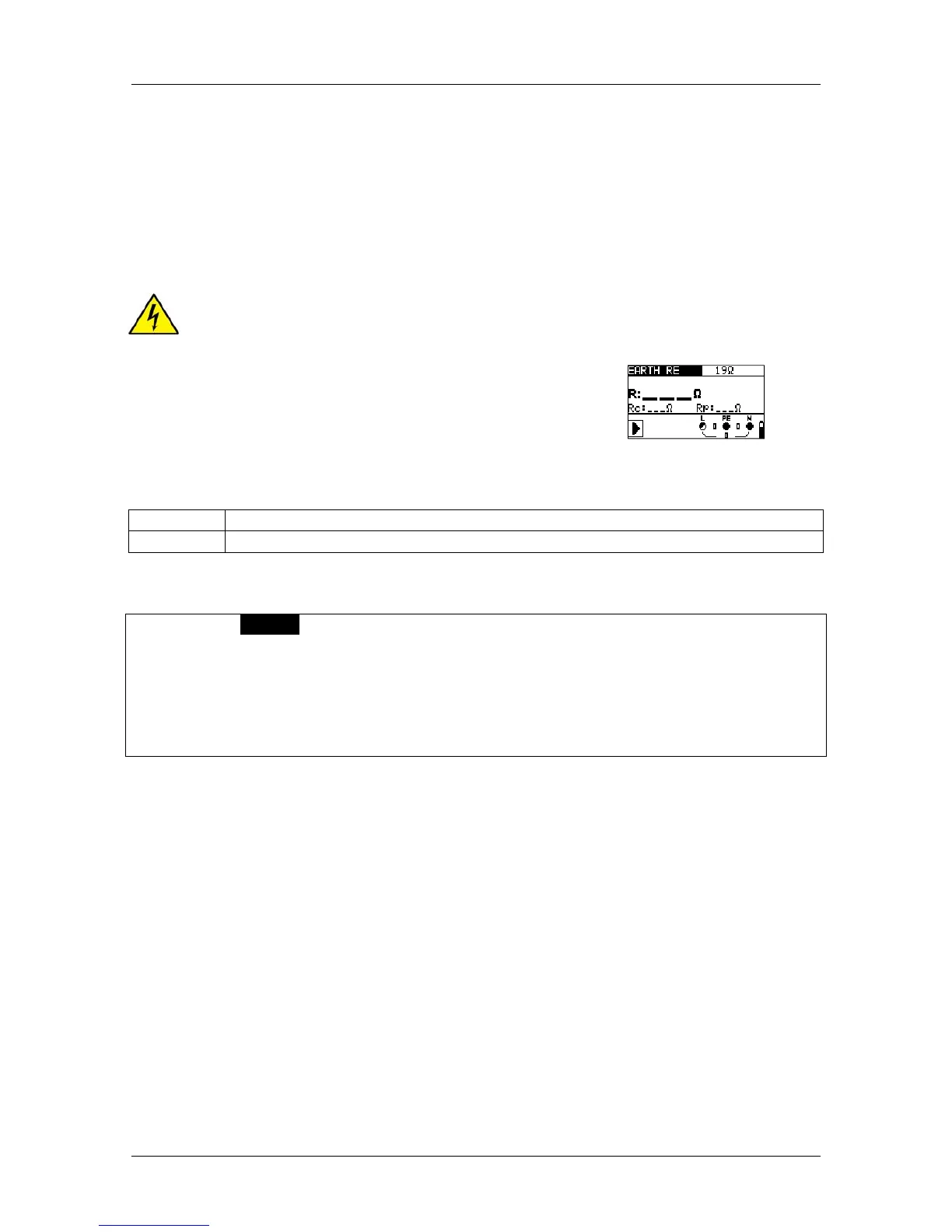 The Earth resistance function uses a 3-wire earth resistance test method for standard