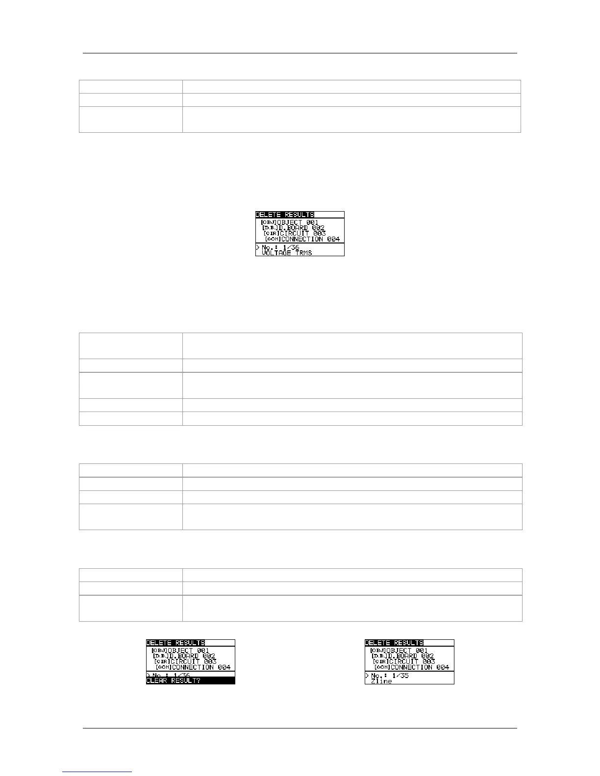 Function of Keys in dialog for confirmation to clear selected result(s):