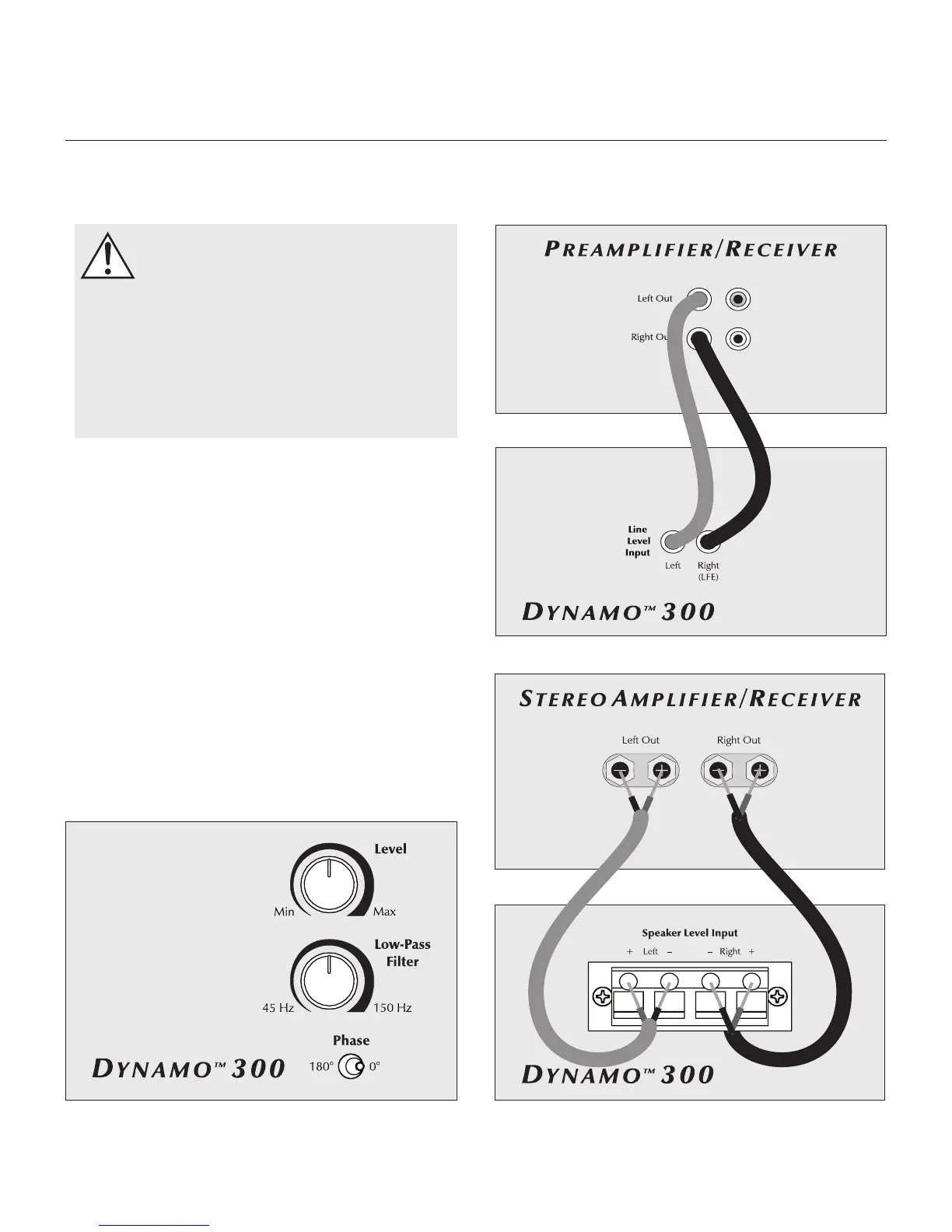 Figure 2. For 2-channel mode adjust Level, Low-Pass Filter, & Phase controls. Figure 4. Signal connection for 2-channel mode via speaker level input.