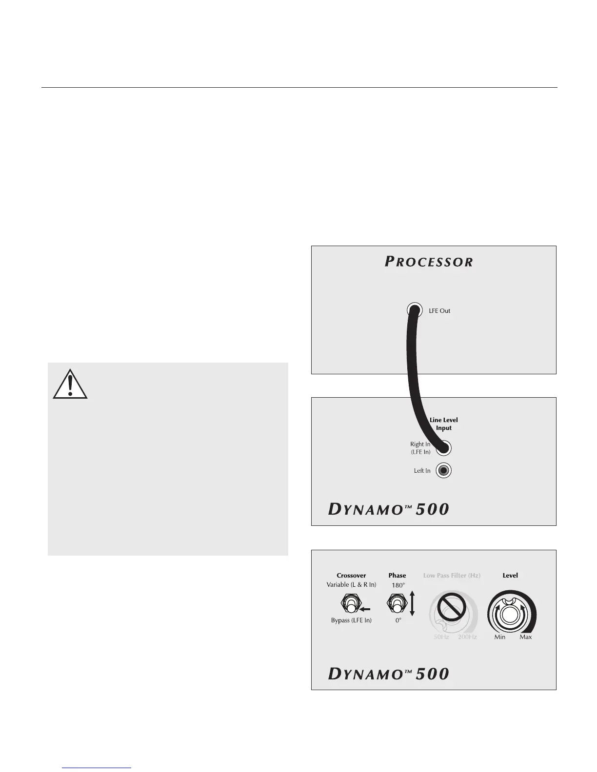 1 Connect the LFE output of the processor to the LFE input