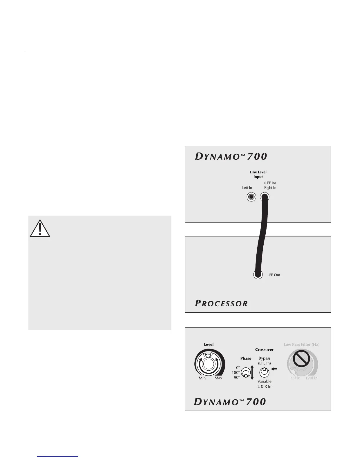 1 Connect the LFE output of the processor to the LFE input