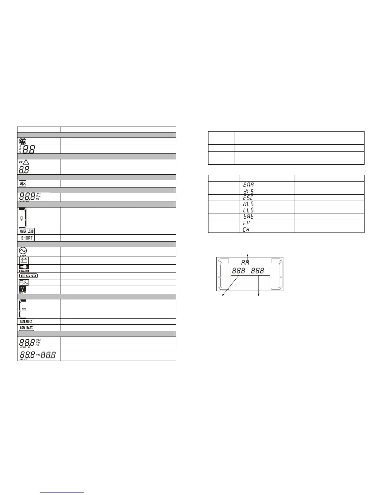 Indicates the output voltage, frequency, or battery voltage.