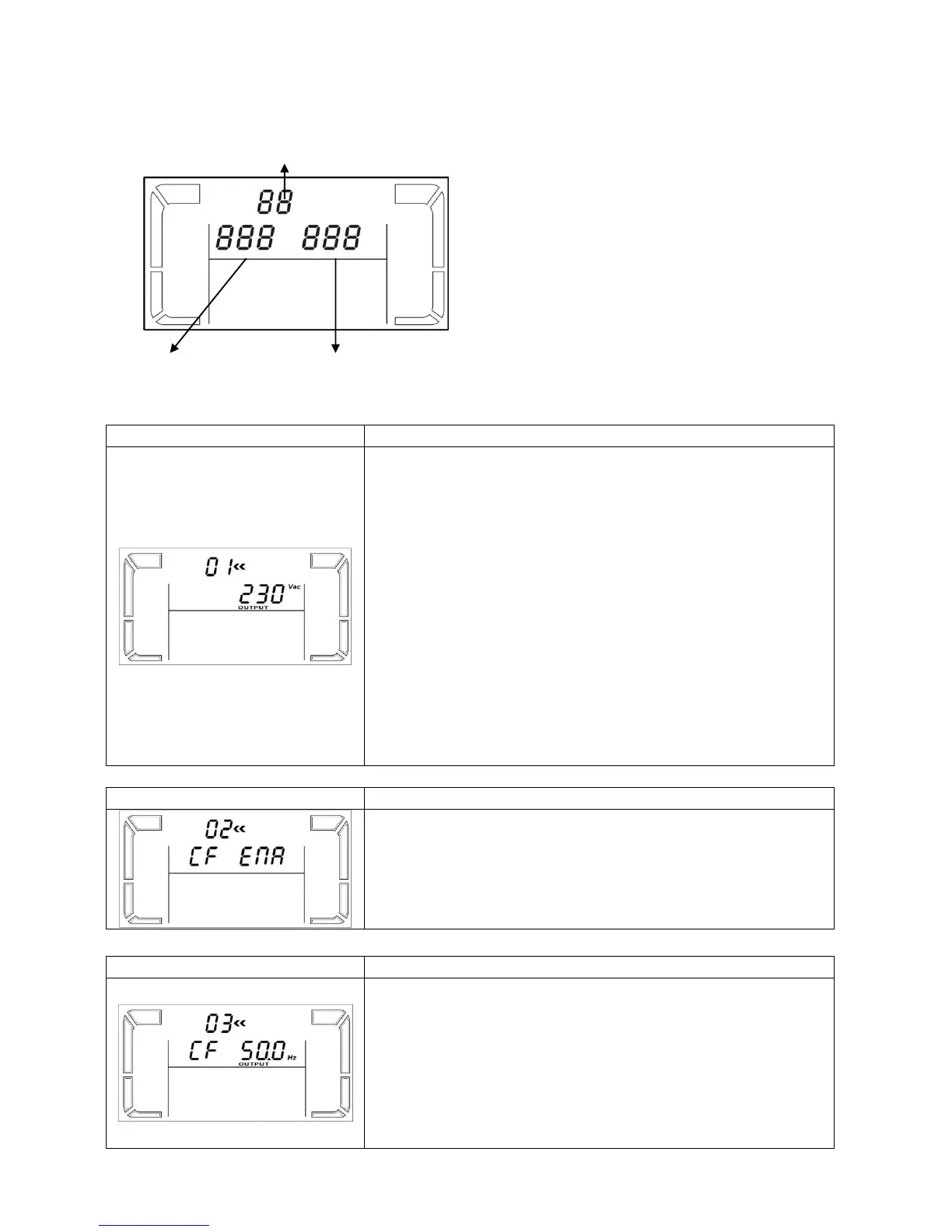 CF 50: presents output frequency is 50Hz