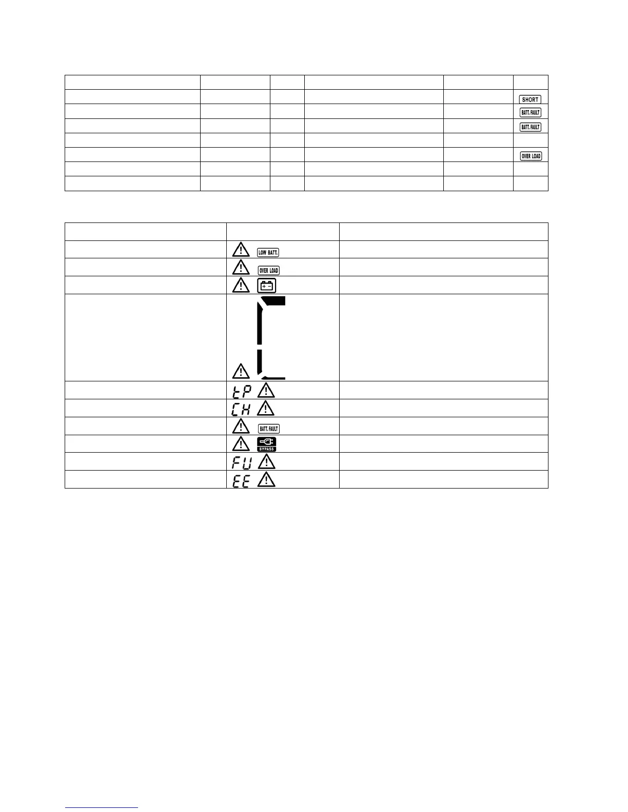 Maruson ULT-W1K - Faults Reference Code; Warning Indicator
