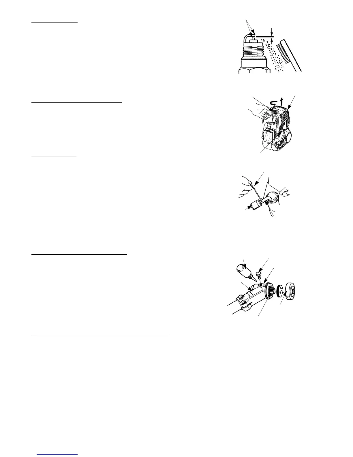 starter cord once and bring the piston to a position closest to the spark plug hole. Reinstall the spark plug.