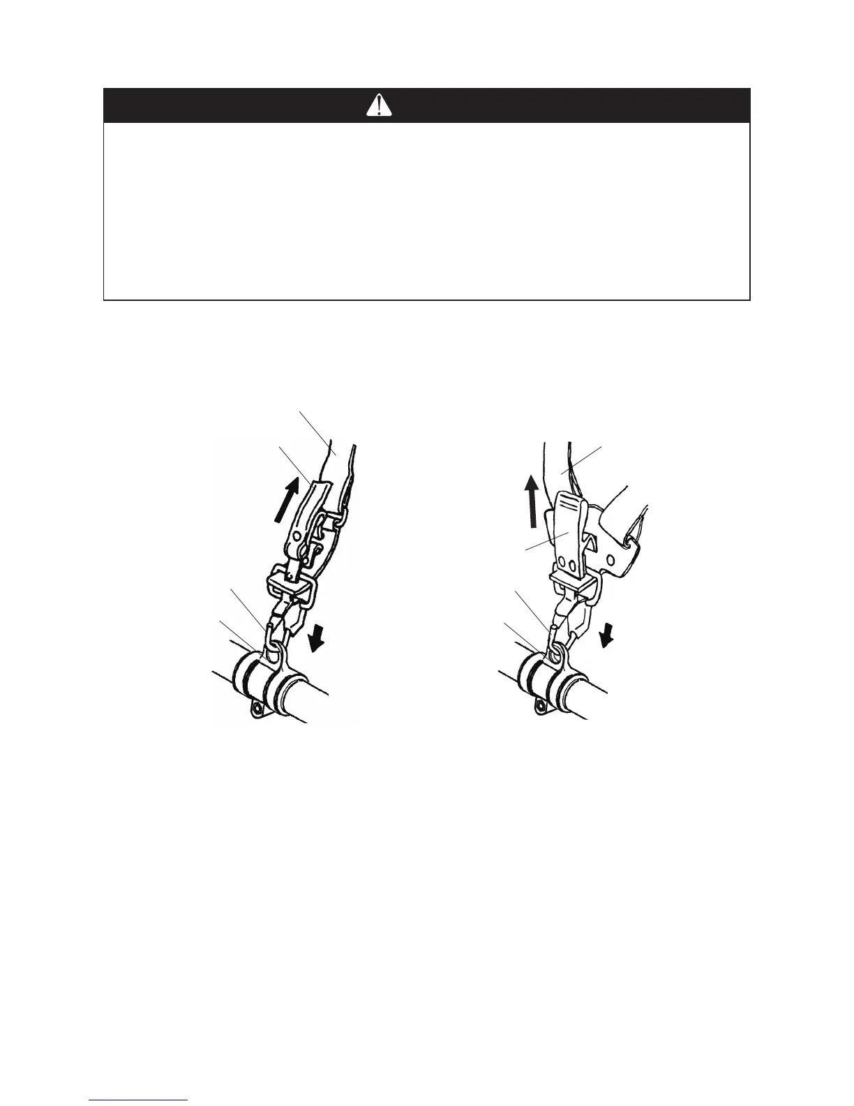 Snap the Hook into the ring on the drive shaft. To detach the shoulder strap/ harness quickly from the