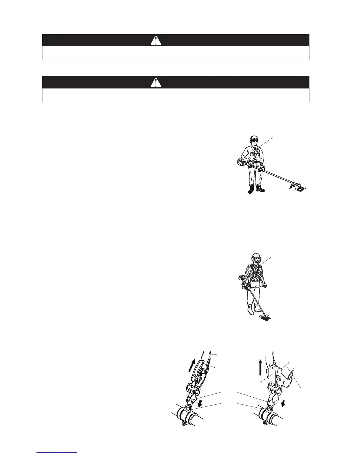 • If the trimmer head becomes jammed, stop the engine immediately.