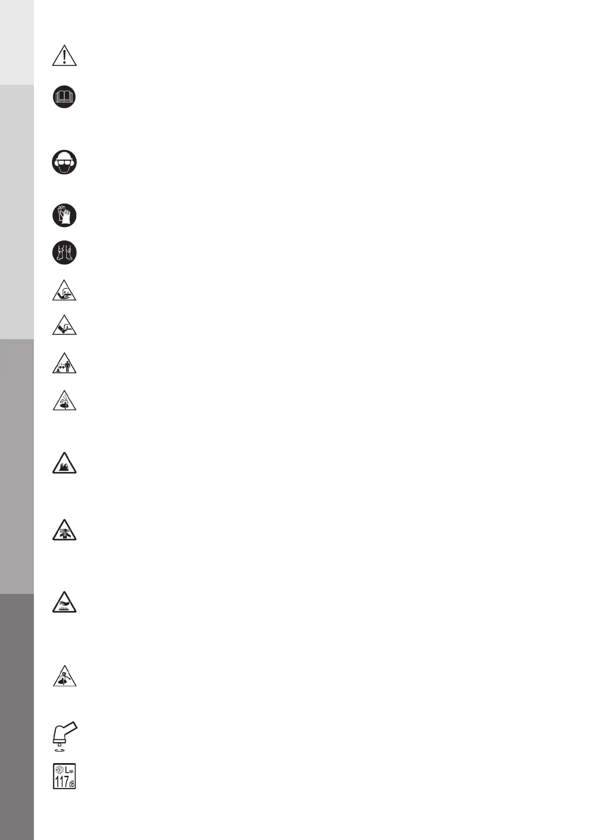 blade thrust (kick-back). The blade is capable of amputating an arm or leg. Always swing the Brushcutter from right to left.
