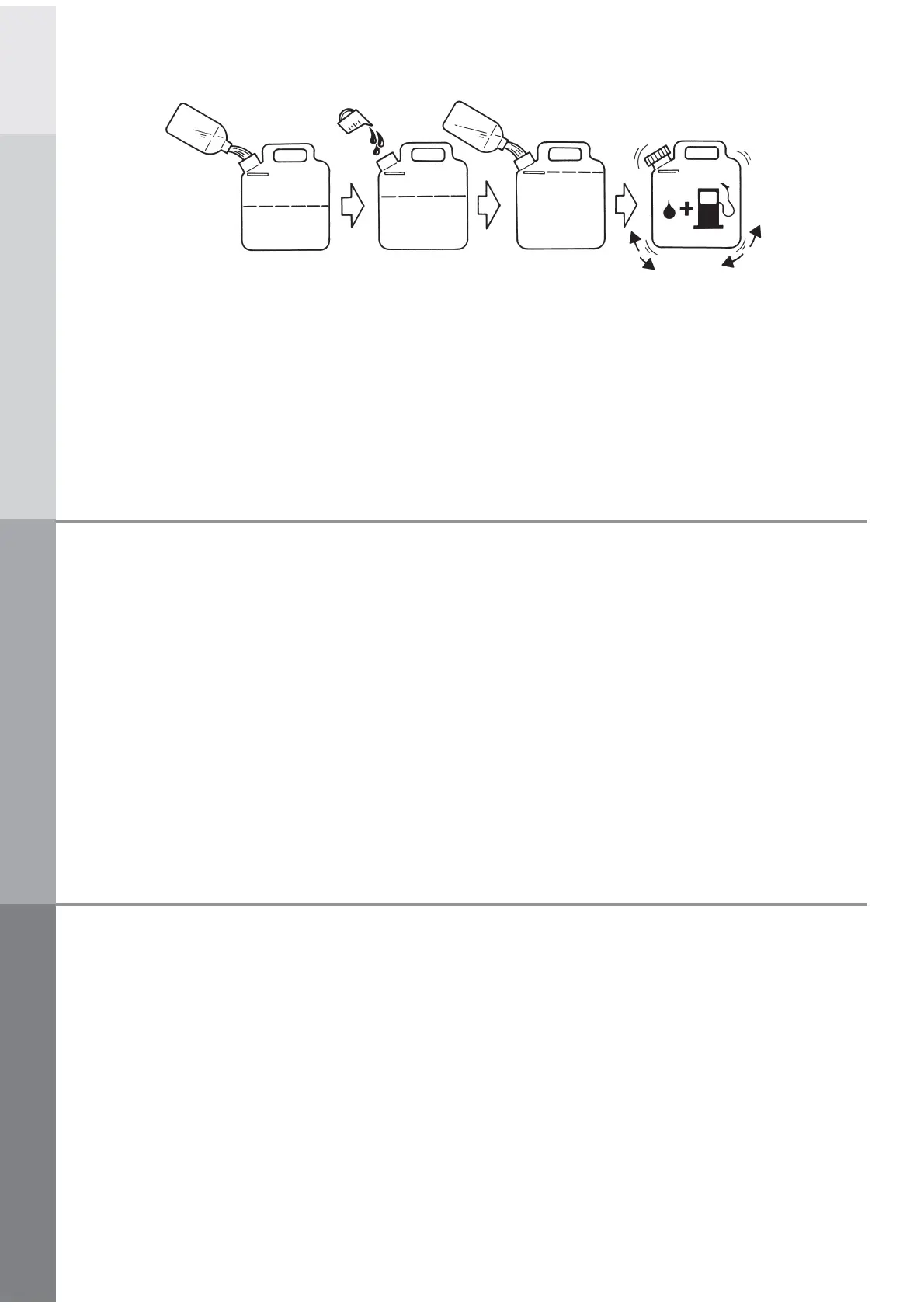 amount of oil into the container then add the remaining amount of petrol. Close the con-