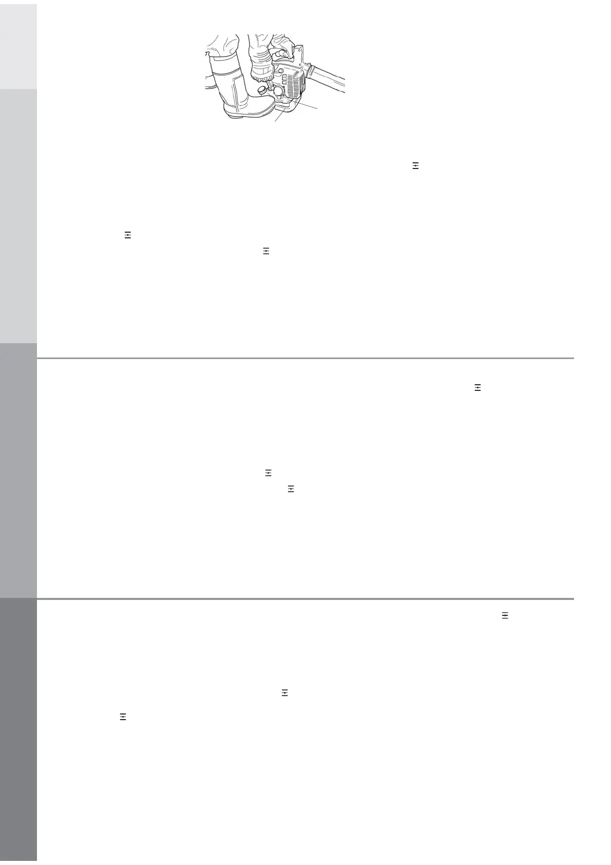 IMPORTANT: Be careful not make damages to fuel tank or the blower by your foot.