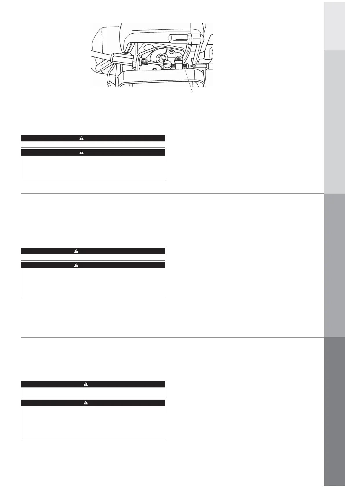 • Engine must be running to make carburetor adjustments. When engine is running,