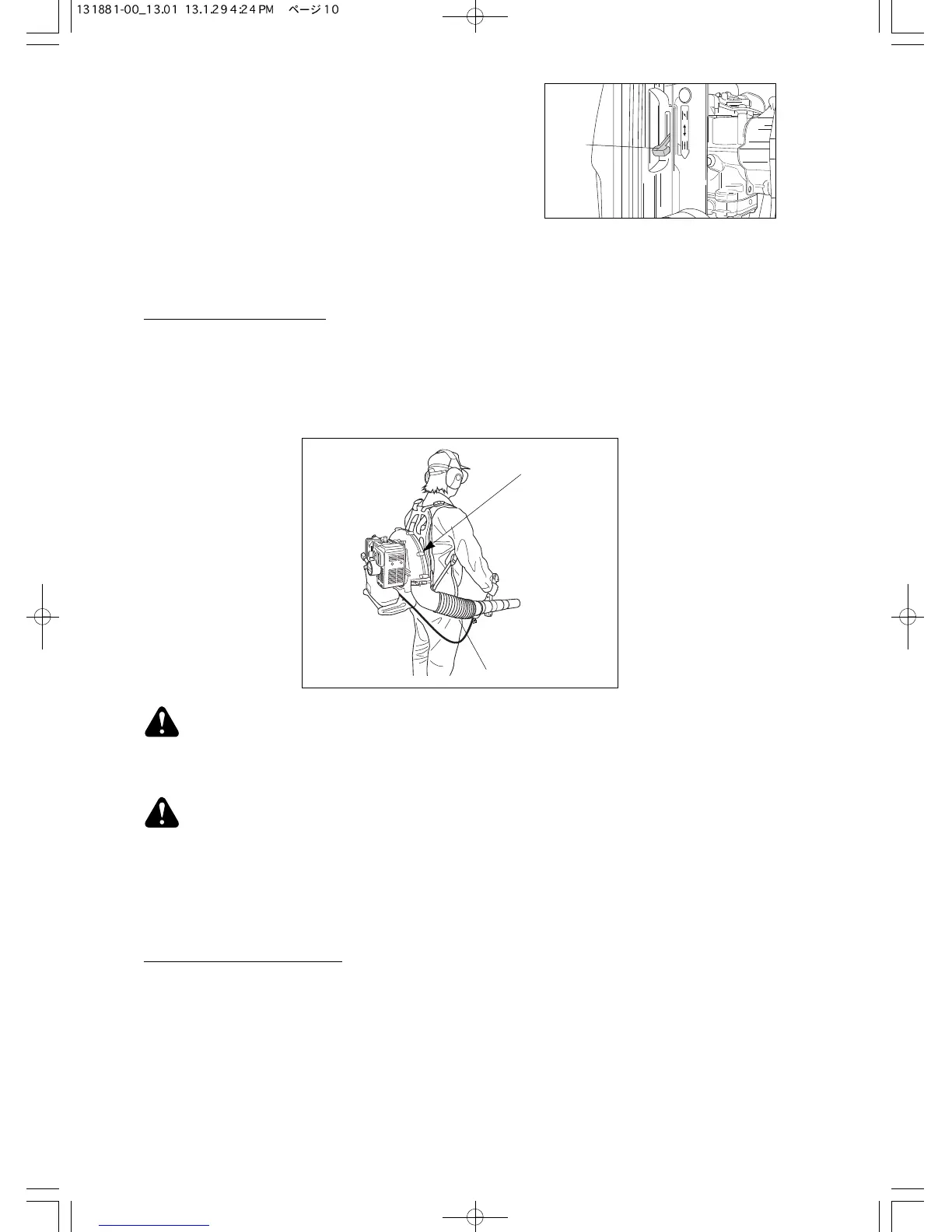 When the engine has warmed-up, the power blower can be positioned on the back of the operator.